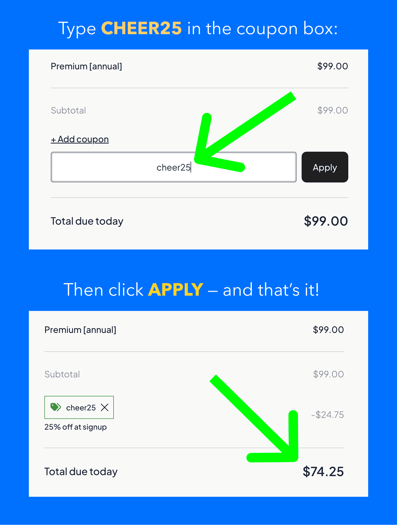 Reader β I wanted to let you know my Black Friday promotion is now live! If you've been meaning to take your guitar playing to the next level and save some $$$, you don't want to miss this. Save 25% on your first month (or year) of Song Notes Premium with coupon code CHEER25