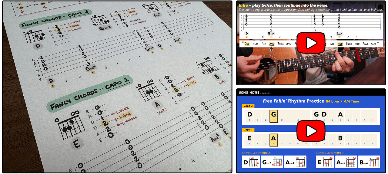 LESSON #619 Click to view free video lesson » In today’s lesson I’ll teach you to play Free Fallin’ by Tom Petty, which I consider an all-timer as far as guitar songs go. Whether you're a beginner or much more far along in your journey, this song gives us plenty to have fun with. Here's what I tackle: