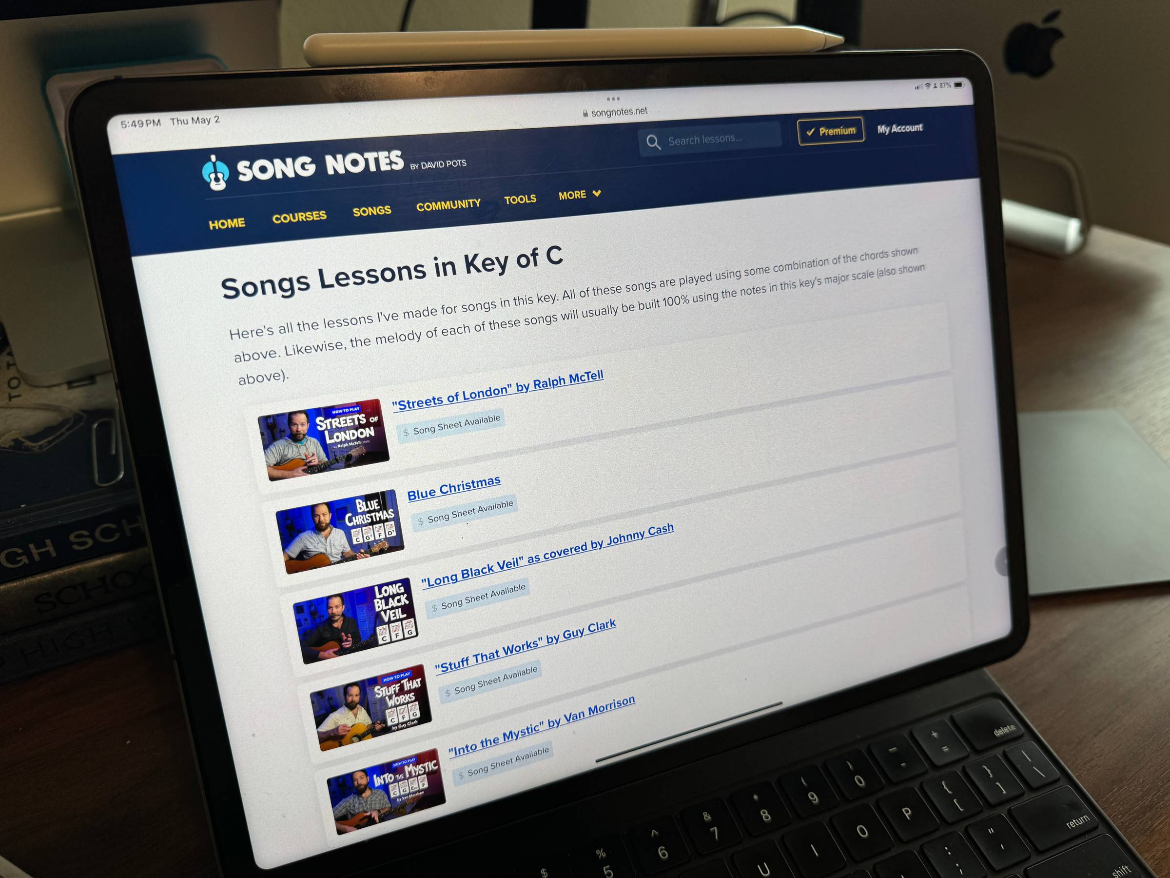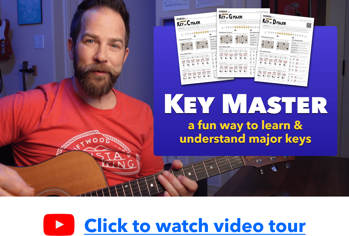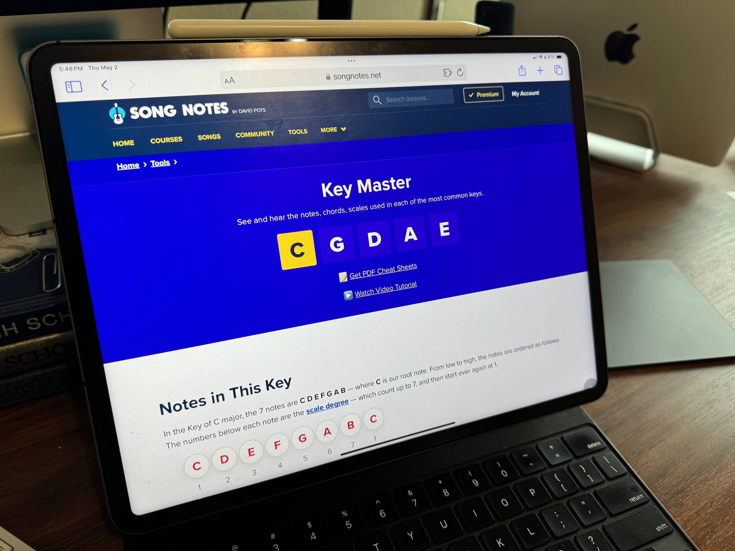 Hey there, Reader β here's monthly digest as we wrap up April and head into May! Hard to believe summer is almost here... my kids have less than 4 weeks left of school and soccer, and then it's away we go into summertime. But first, I have some fun guitar stuff to share.... First, let me introduce you to Key Master β a new interactive web tool over on my Song Notes website. This free tool lets you see and hear the notes, chords, and progressions found in the most common major keys β all in your browser. Here's a video tour showing you a few ways you might put it to use: Here's a quick series of photos showing what the tool looks like and some ways to use it... So once more, check it out right now in your browser β just visit https://songnotes.net/tools/keymaster and you're off to the races! I have a few other tools as well β Fret Monster and Capo Captain. And should you need some Blank Tab PDF templates, those are there for you as well. In addition to launching Key Master and tidying up the Tools section of my website β I also published a few new lessons over the last couple weeks. Click the links below to view any additional materials (videos, printable guides) for each of these: